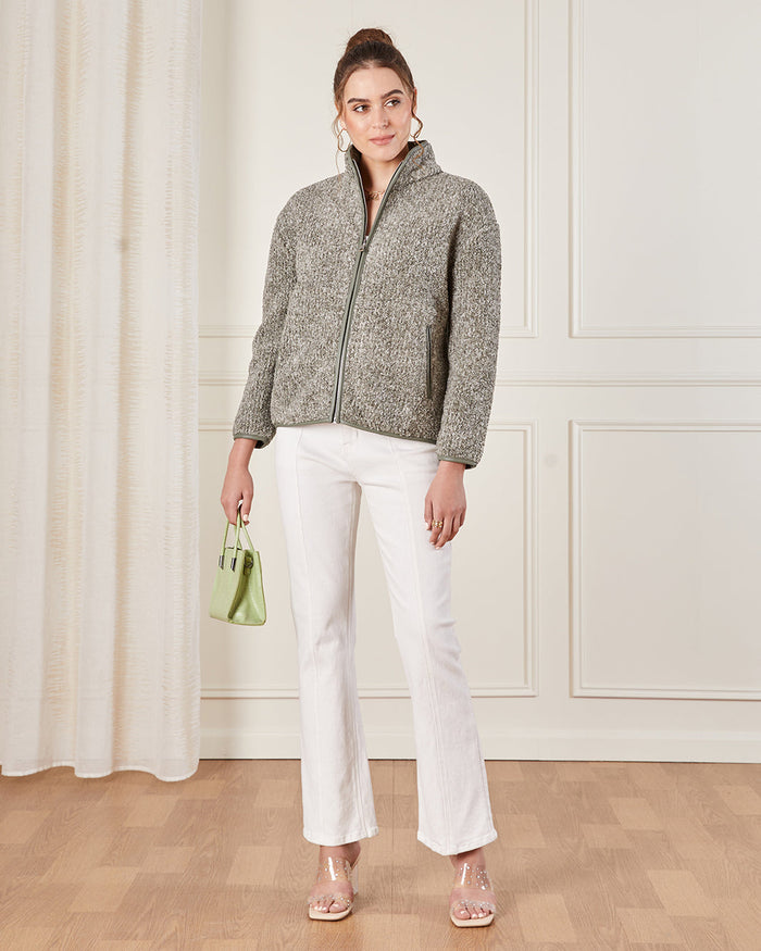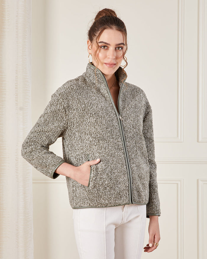 Women Grey Fur Zip Through Sweatshirt