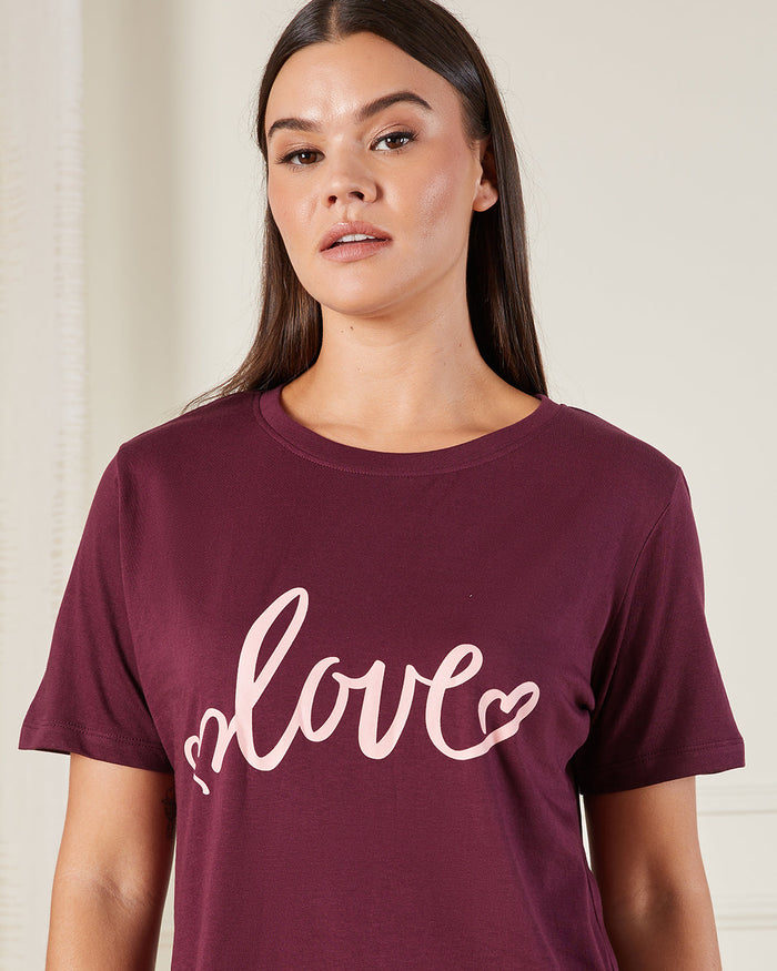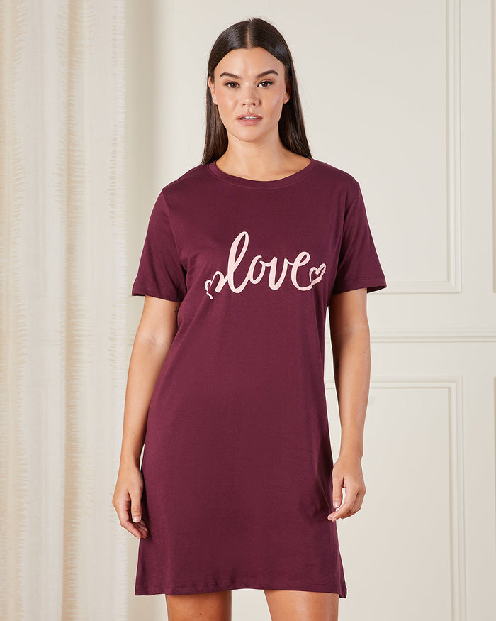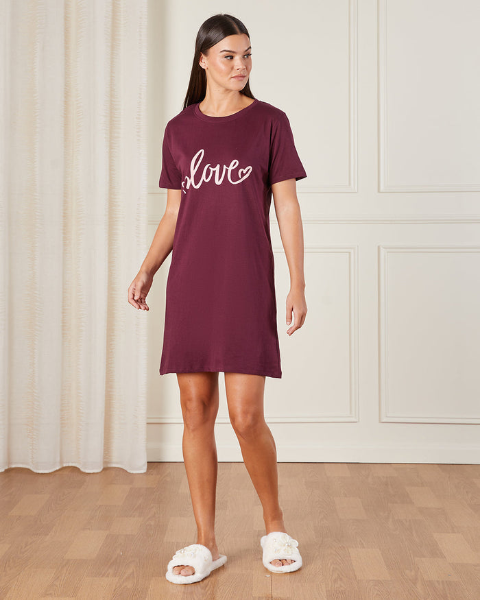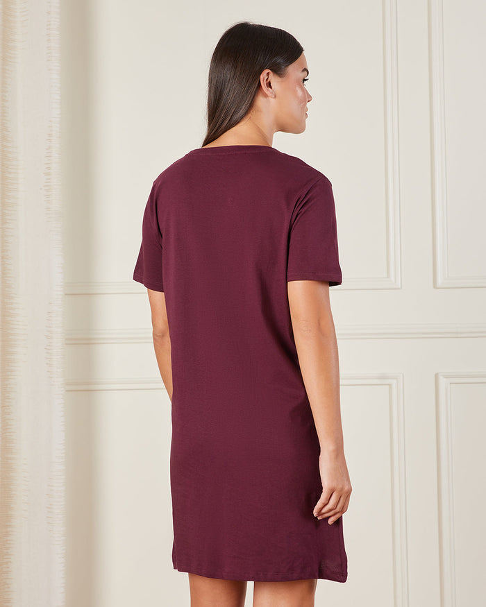 Women Burgundy Printed Nightshirt