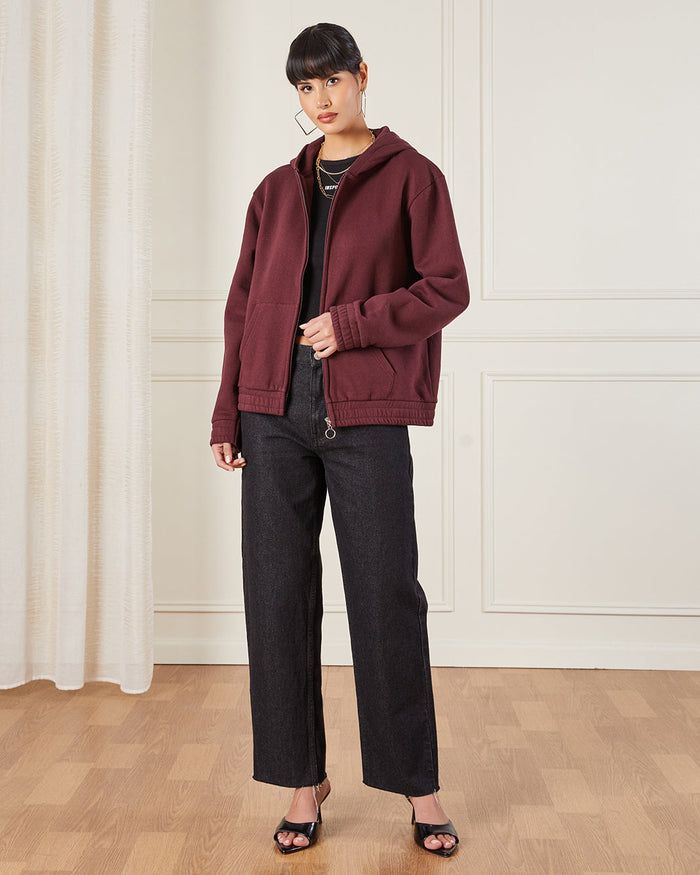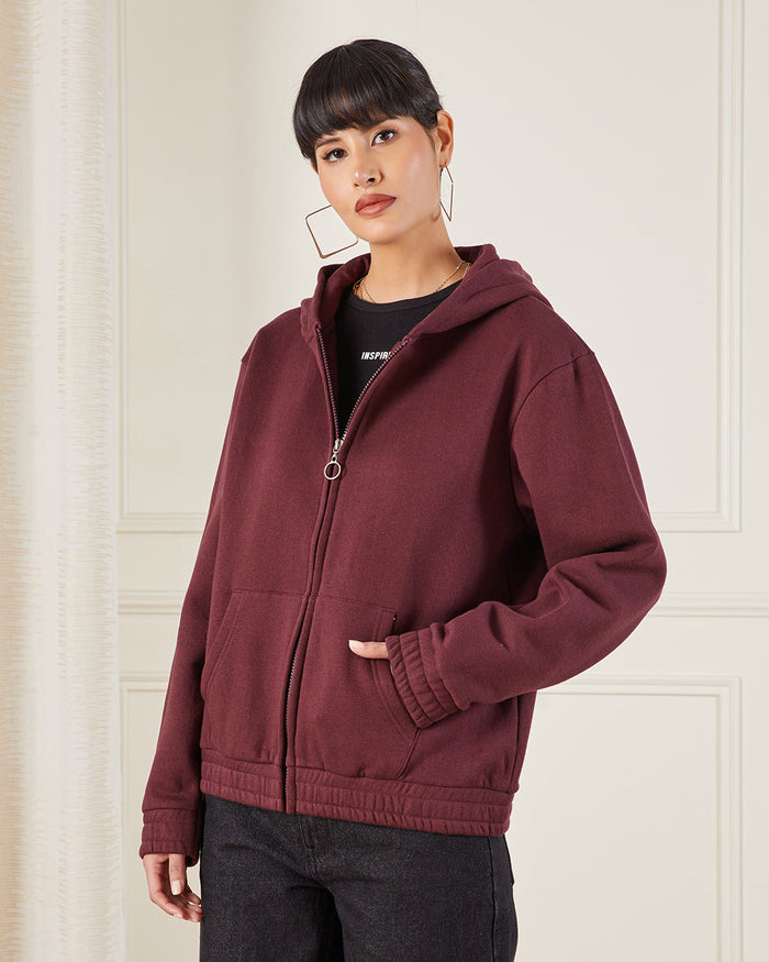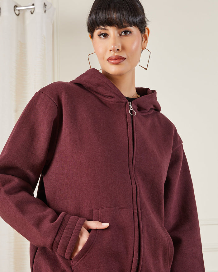 Women’s Burgundy Zip-Through Hoodie Sweatshirt – Basic Fit