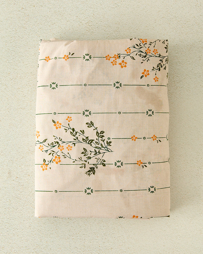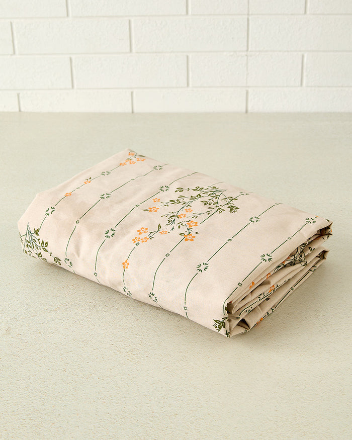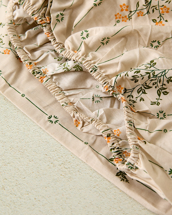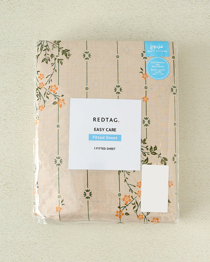 Cream Floral Printed Fitted Sheet (Double Size)