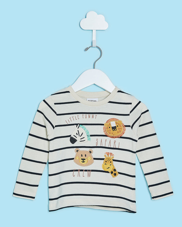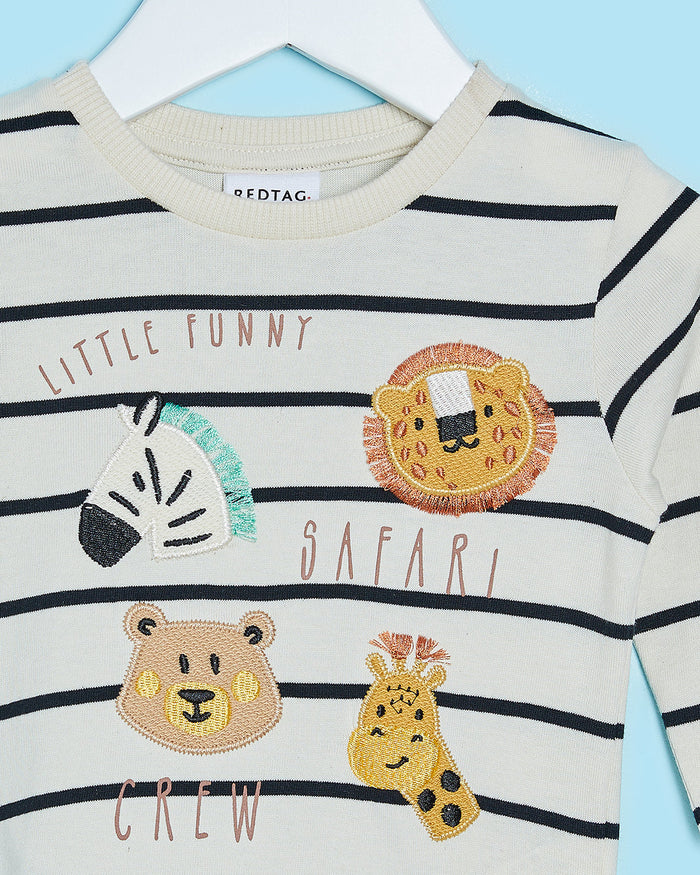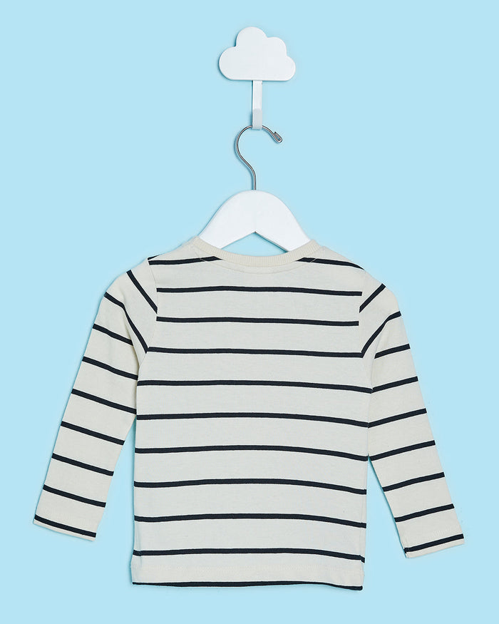 Infant Boys Cream Striped T-Shirt With Embroidery