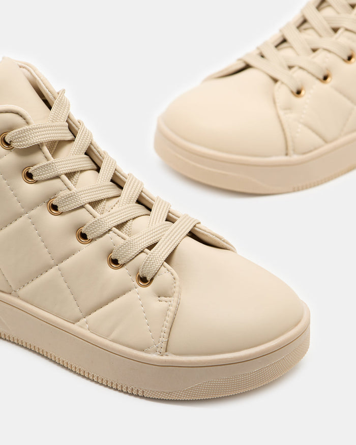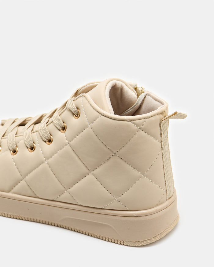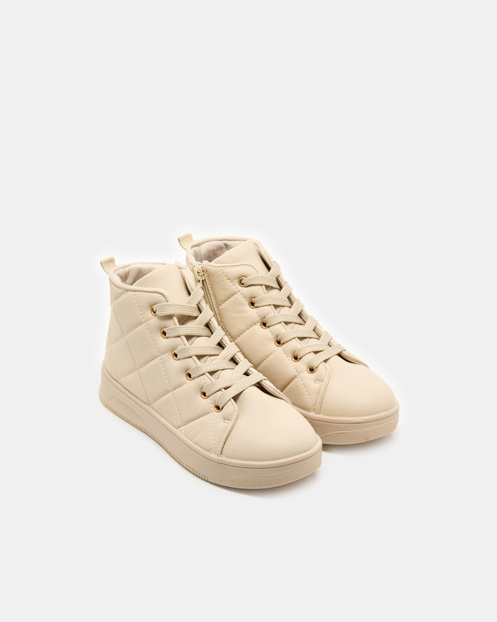 Cream Quilted High-Top Sneakers for Girls