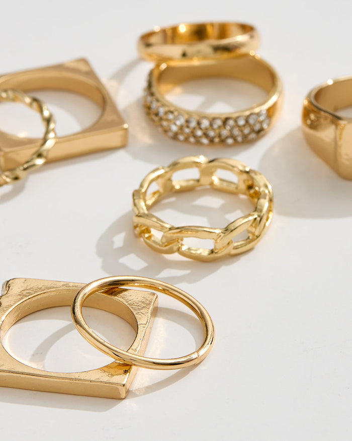 Elegant and versatile! This ring set includes a mix of stylish designs, perfect for layering or wearing individually to suit any occasion.