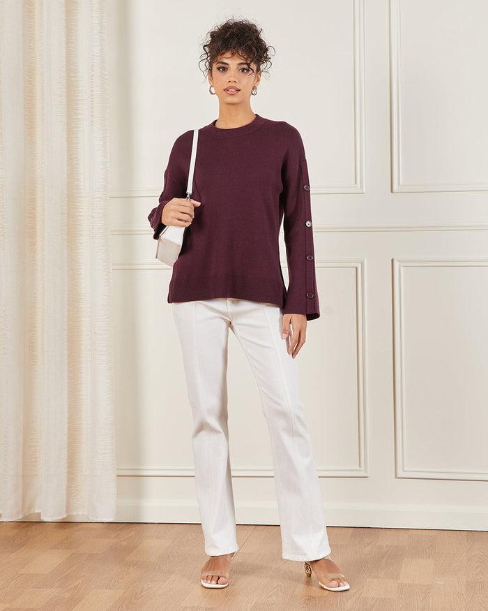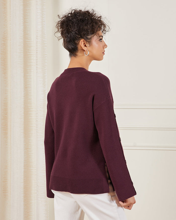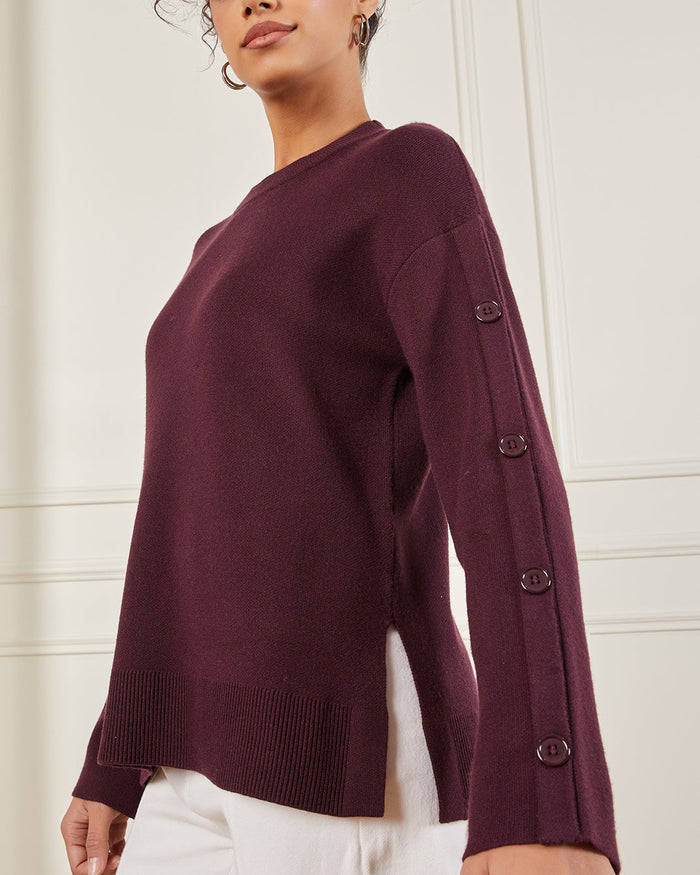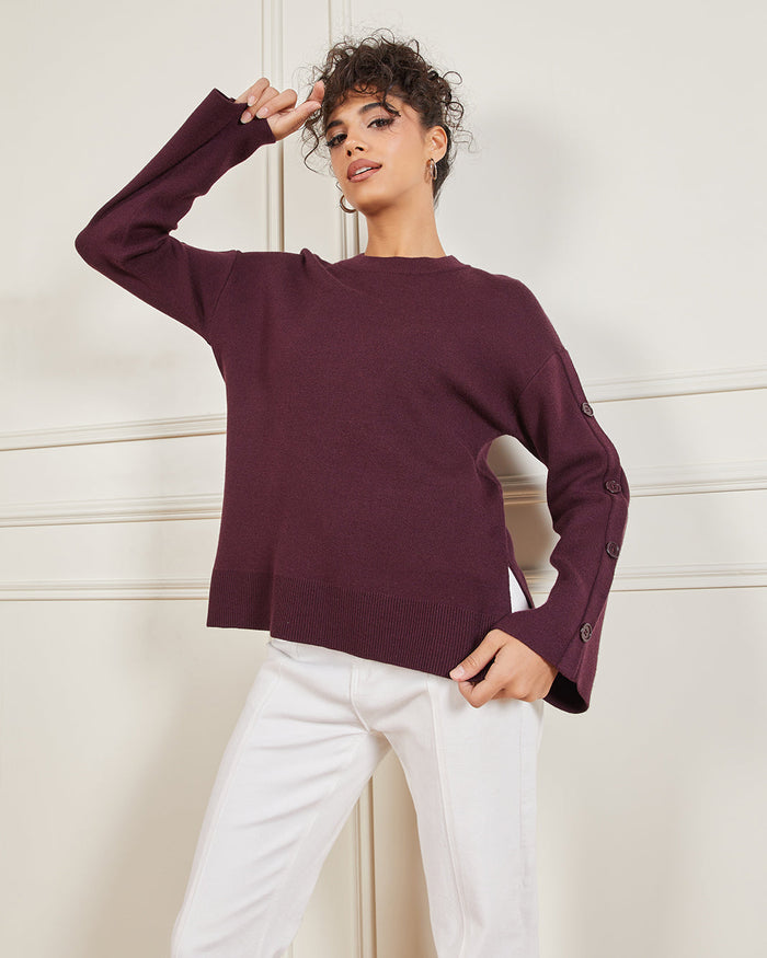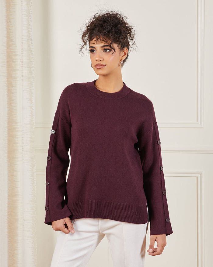 Keep it chic and cosy with this dark purple sweater. Featuring button detailing along the sleeves, this versatile piece adds a refined touch to your everyday look.
