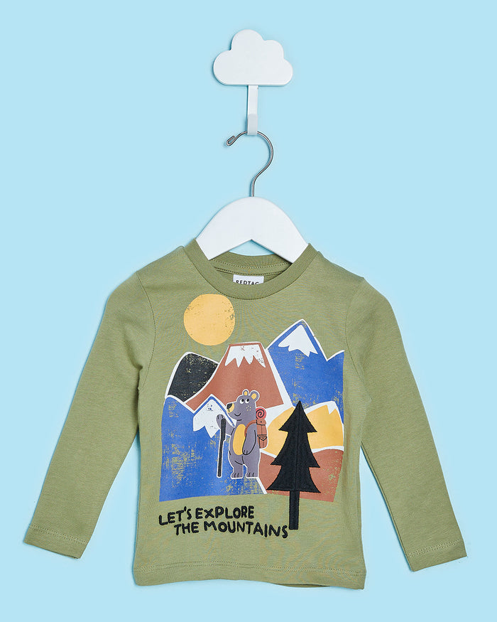 A must-have for every little wardrobe, this baby boy’s long-sleeve T-shirt is crafted from soft, breathable fabric for all-day comfort. Simple yet versatile, it’s perfect for layering or wearing on its own for a cute and casual look.