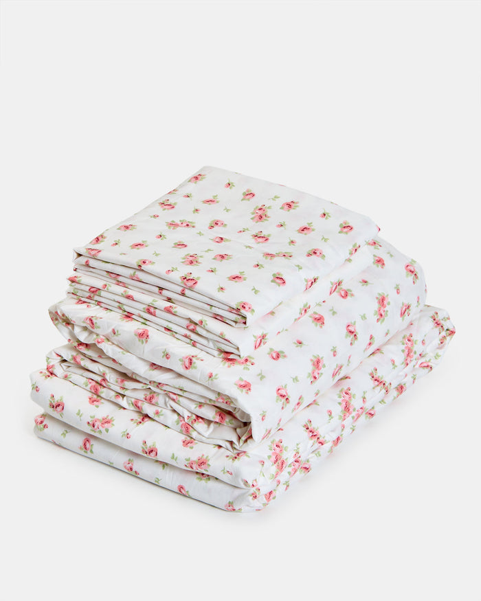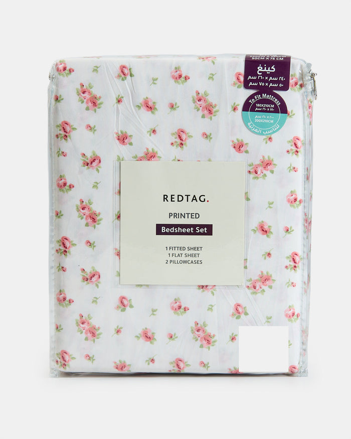 Bring a touch of charm to your room with this Printed Bedsheet Set. Featuring delicate floral patterns on a soft fabric, it adds freshness and elegance to your space. Includes one fitted sheet, one flat sheet, and two pillowcases for a complete coordinated look