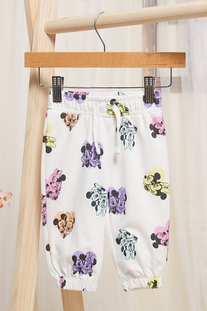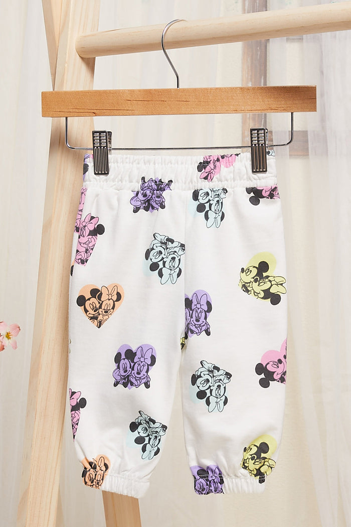 Infant Girls Ivory Mickey And Minnie Mouse Active Pants