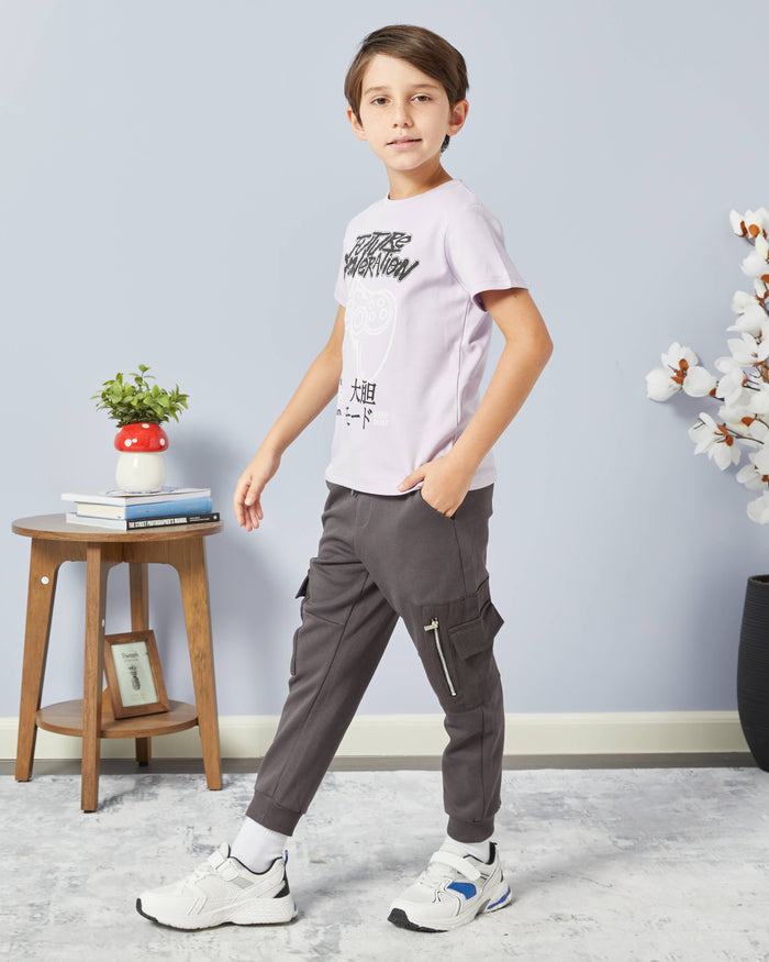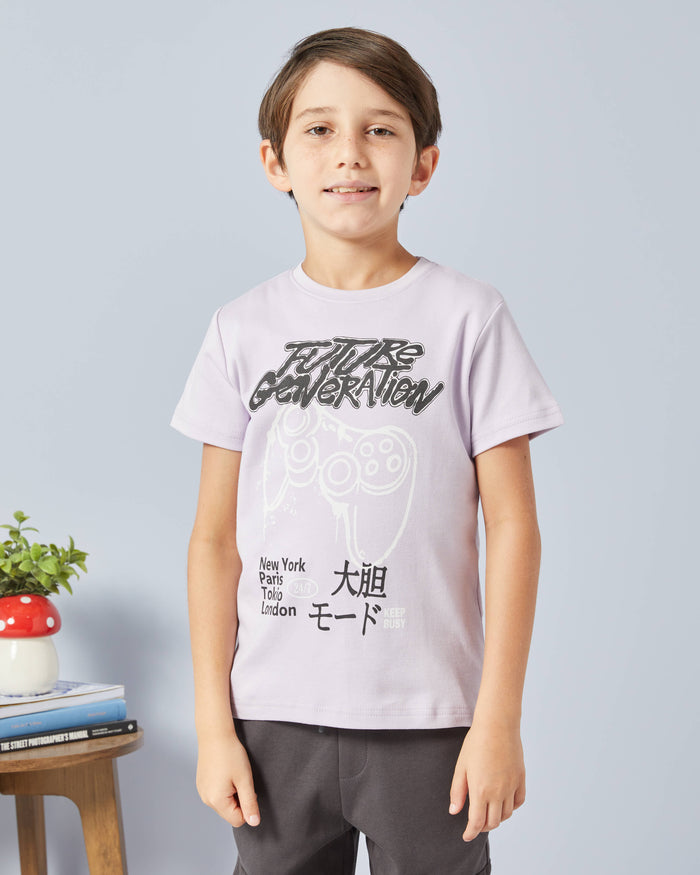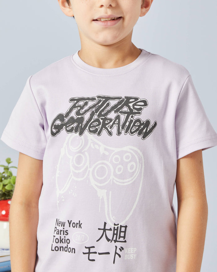 Add a pop of fun to his wardrobe with this boys’ printed T-shirt. Soft, breathable, and full of personality—perfect for everyday play.