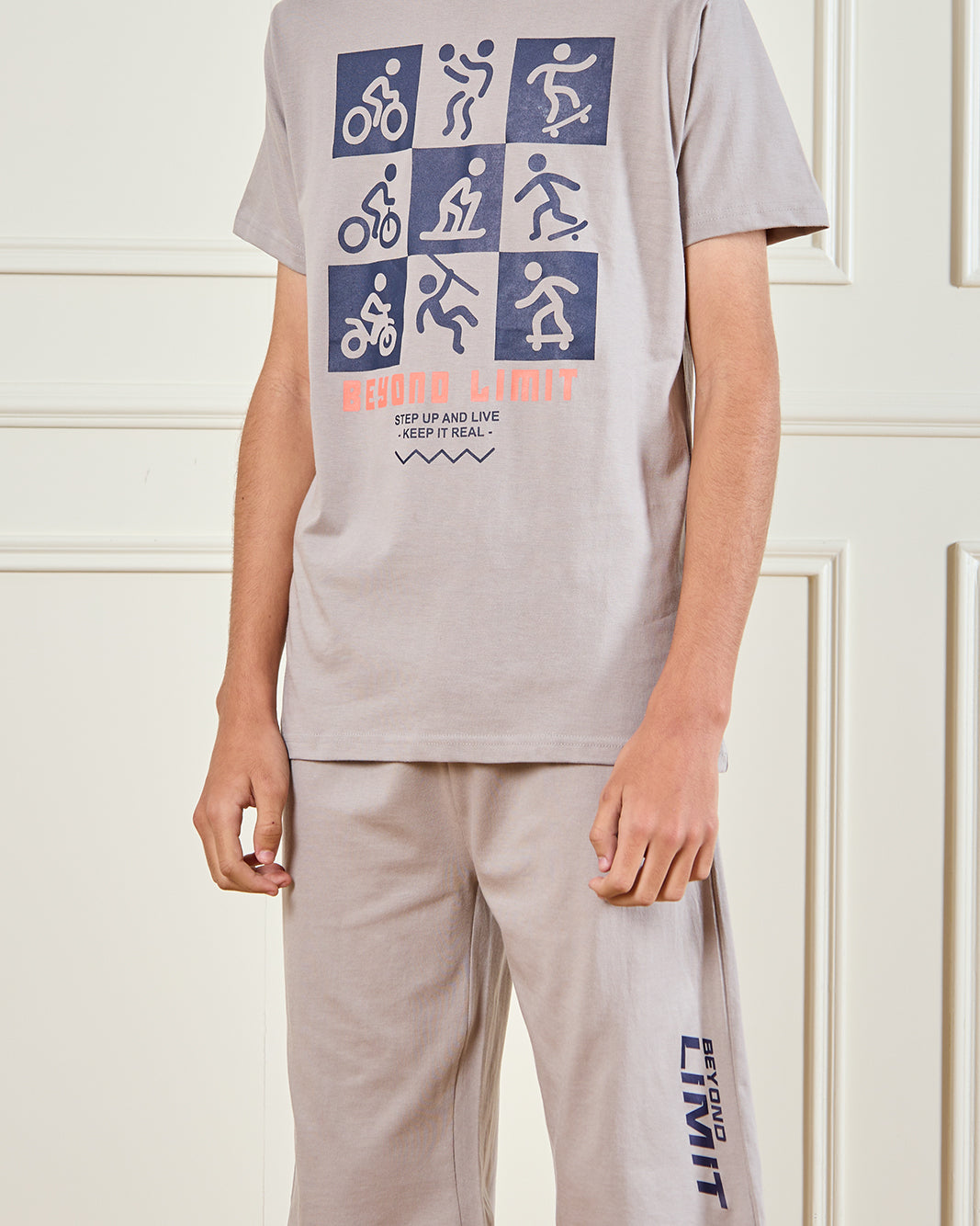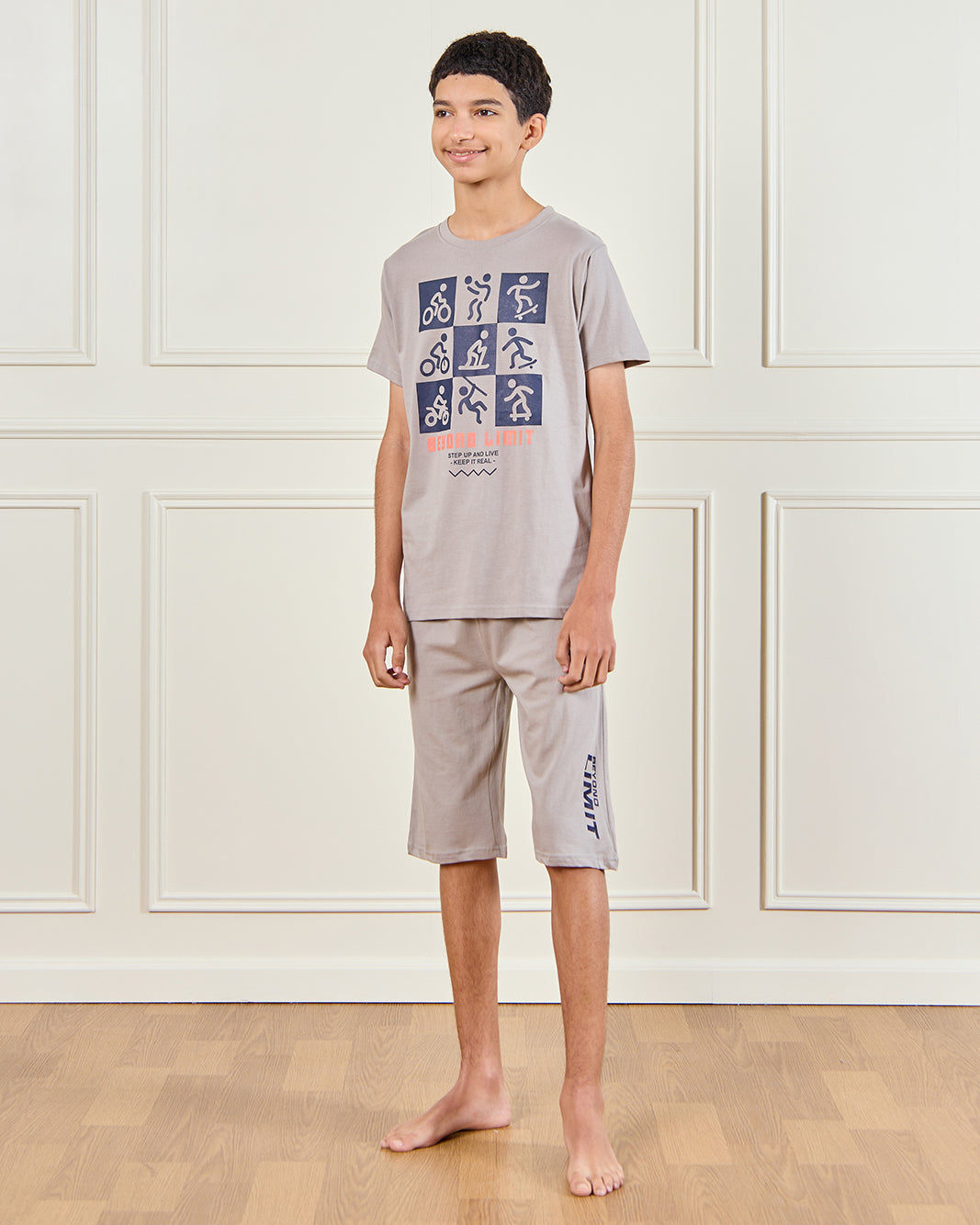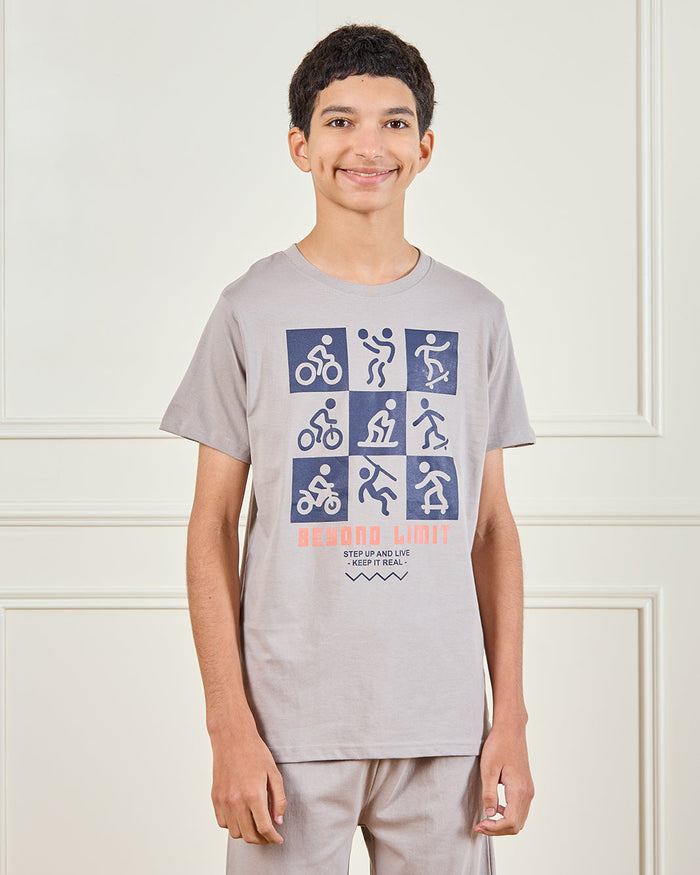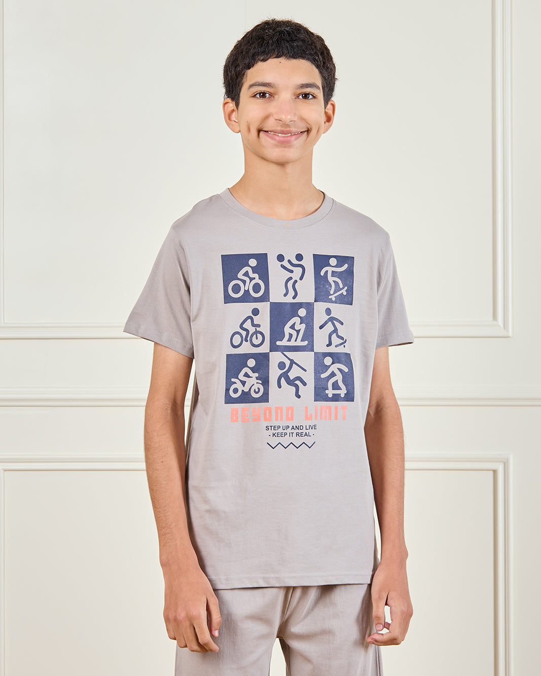 Senior Boys Grey Printed Pyjama Set (2 Piece)