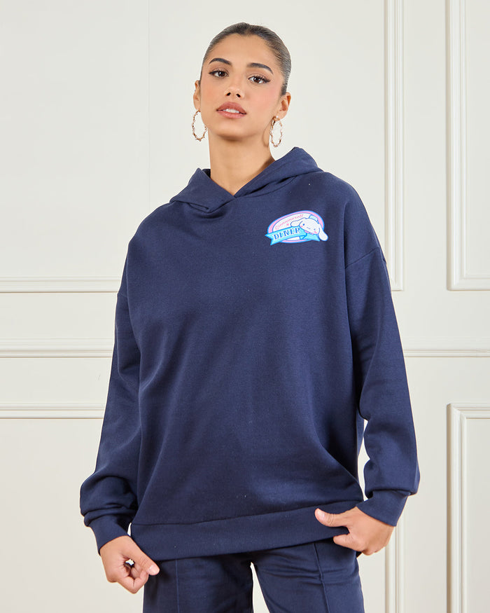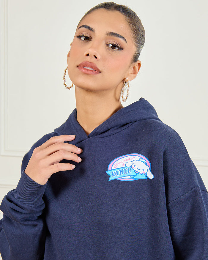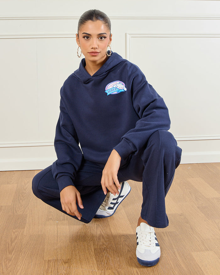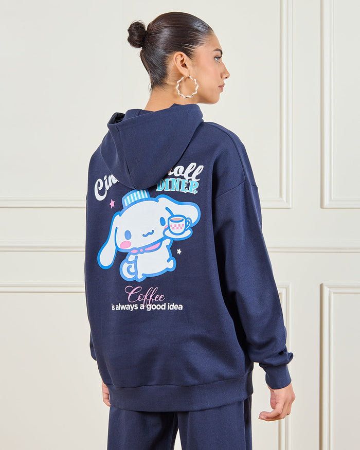 Women Navy Cinnamoroll Printed Hooded Sweatshirt