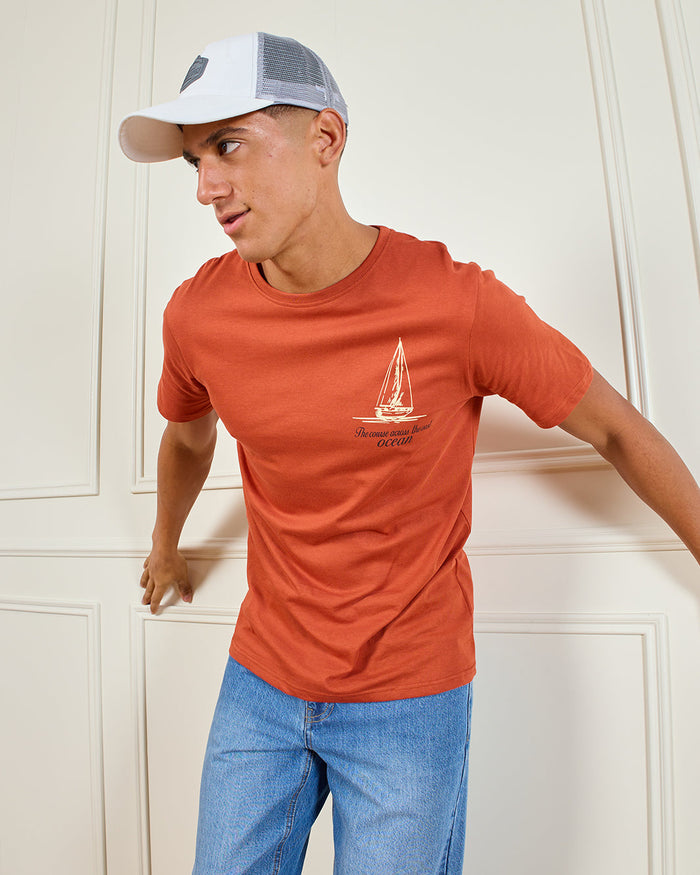 Men Orange Printed T-Shirt
