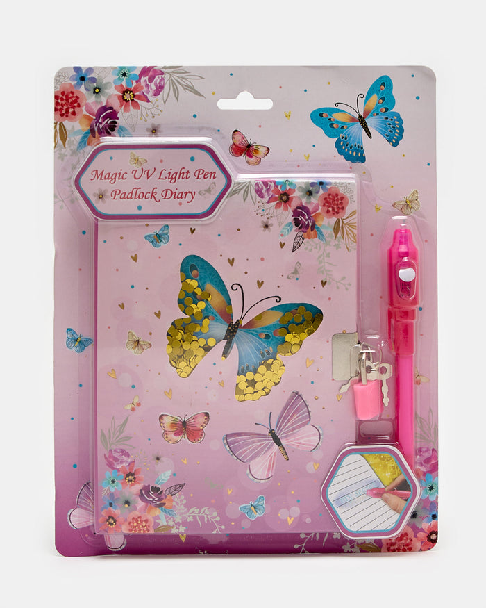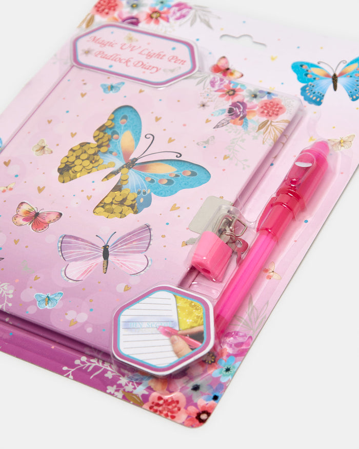 Pink Butterfly Magic UV Lock Diary Set (3 Piece)
