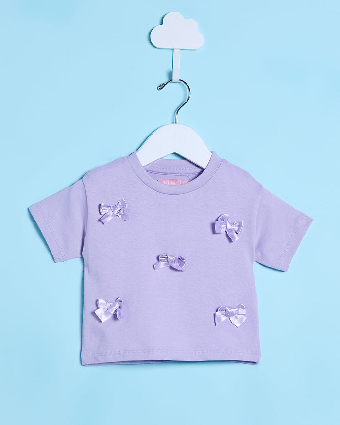Infant Girls Purple Placement Bow T Shirt