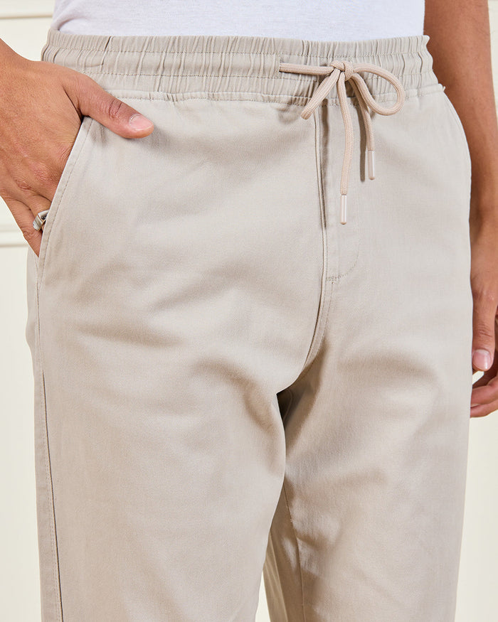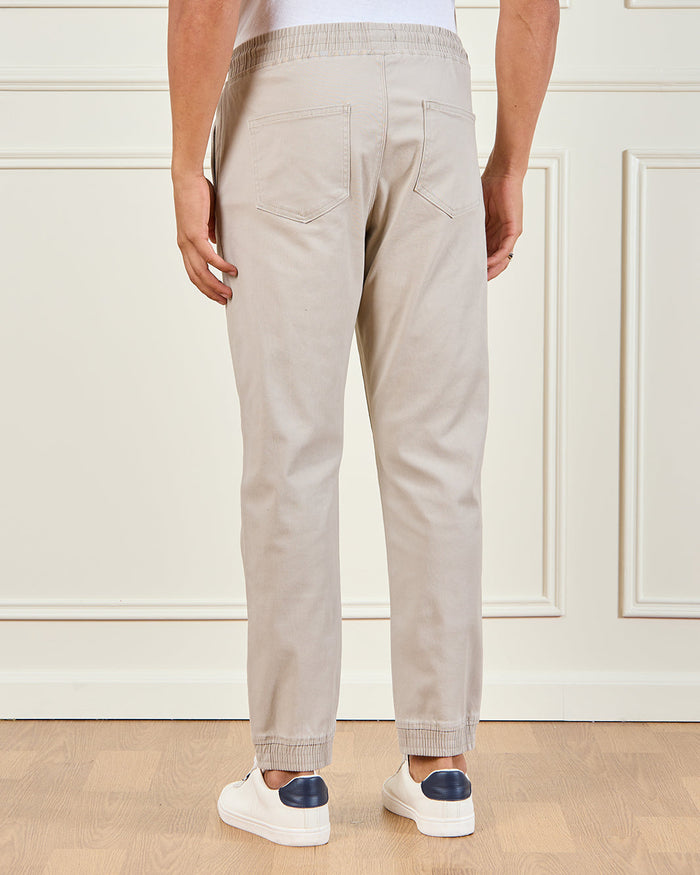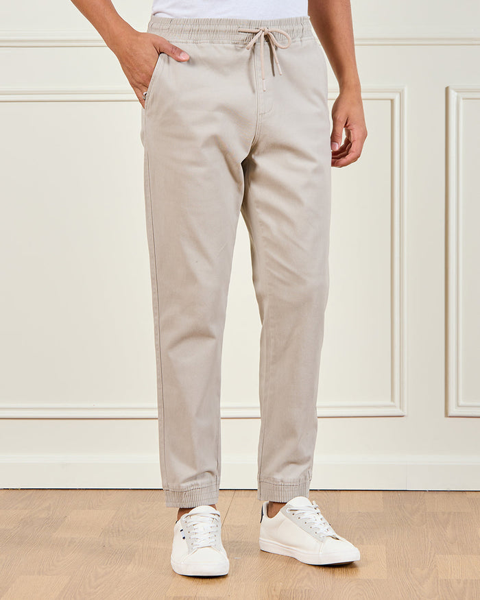 Men Beige Solid Jogger Pants