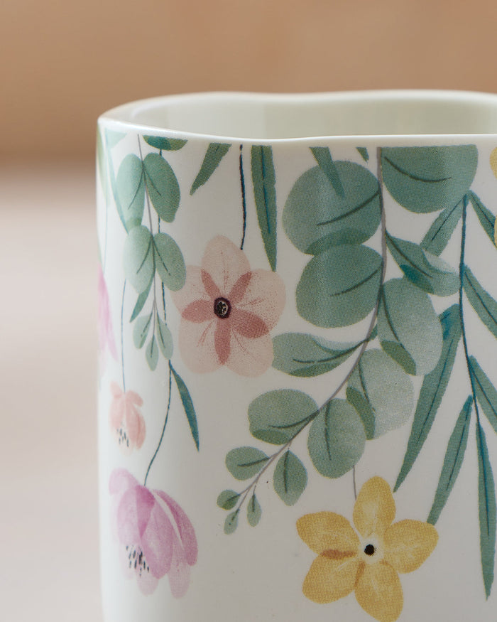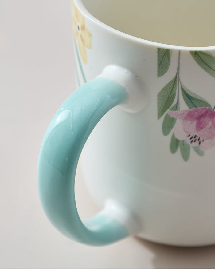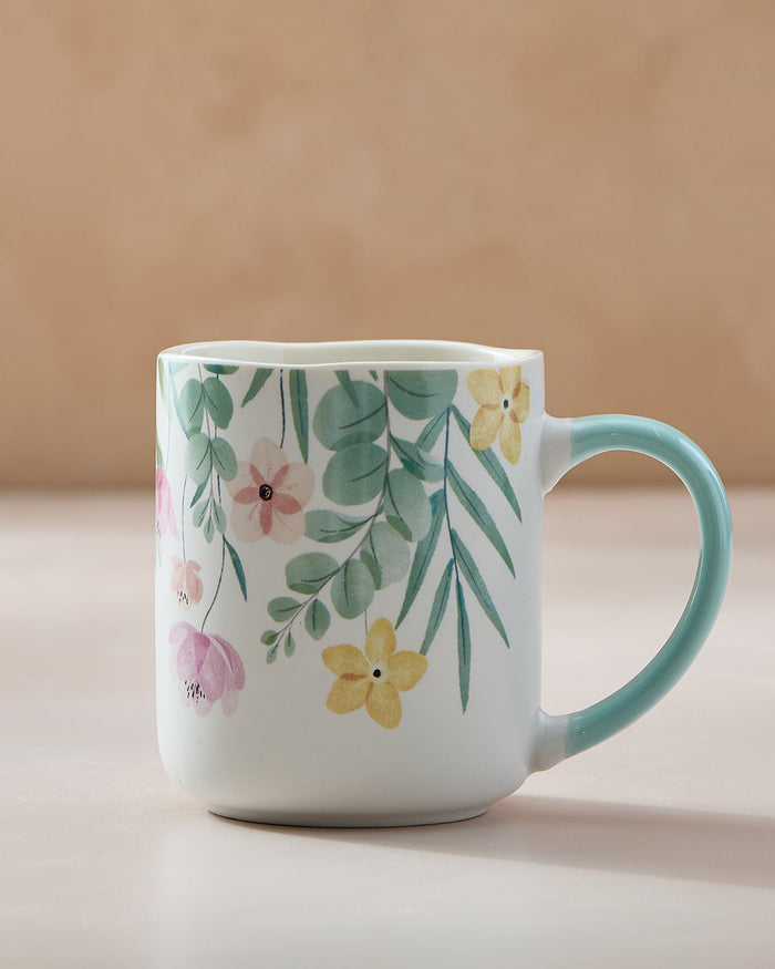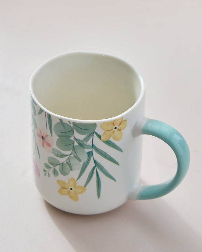 White And Teal Floral Printed Mug