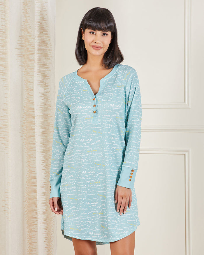 Women Teal Printed Nightshirt