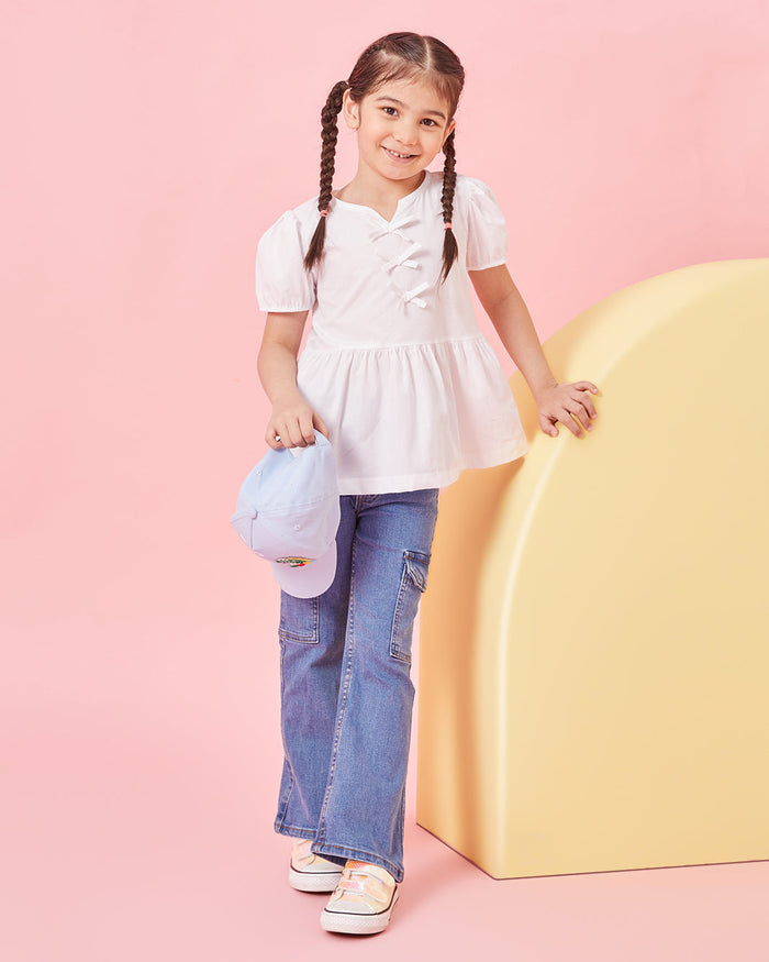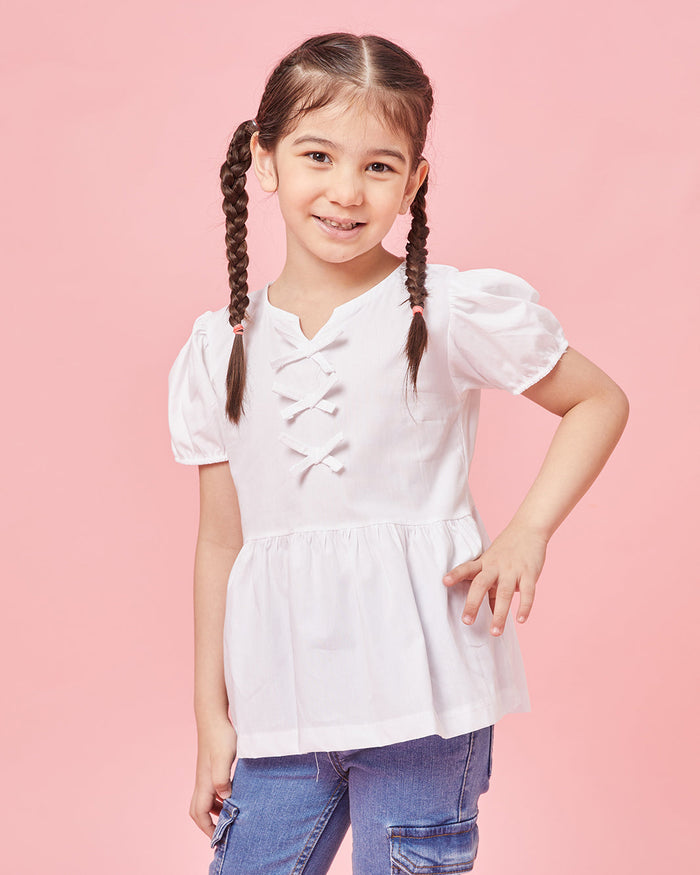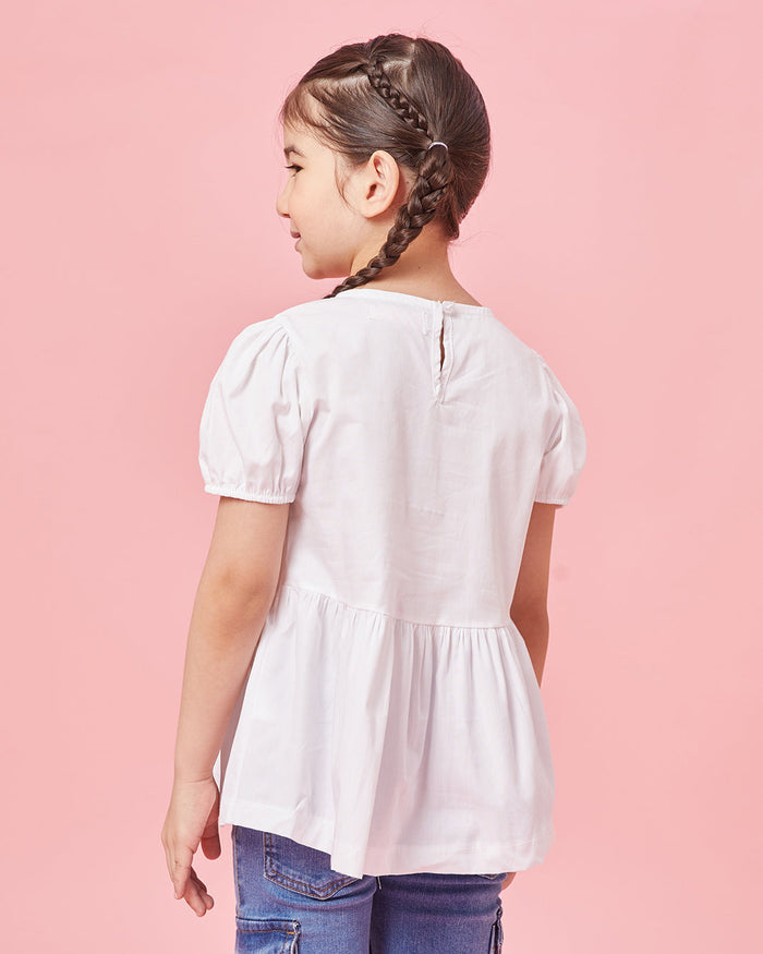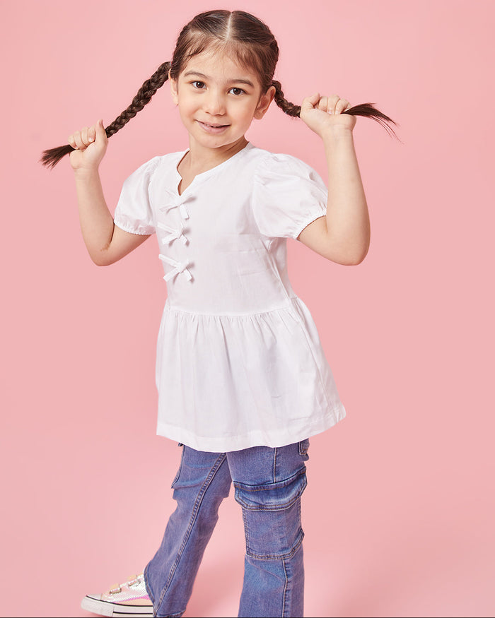 This cute white blouse for girls combines style and comfort with its charming design and soft fabric, making it perfect for any occasion.