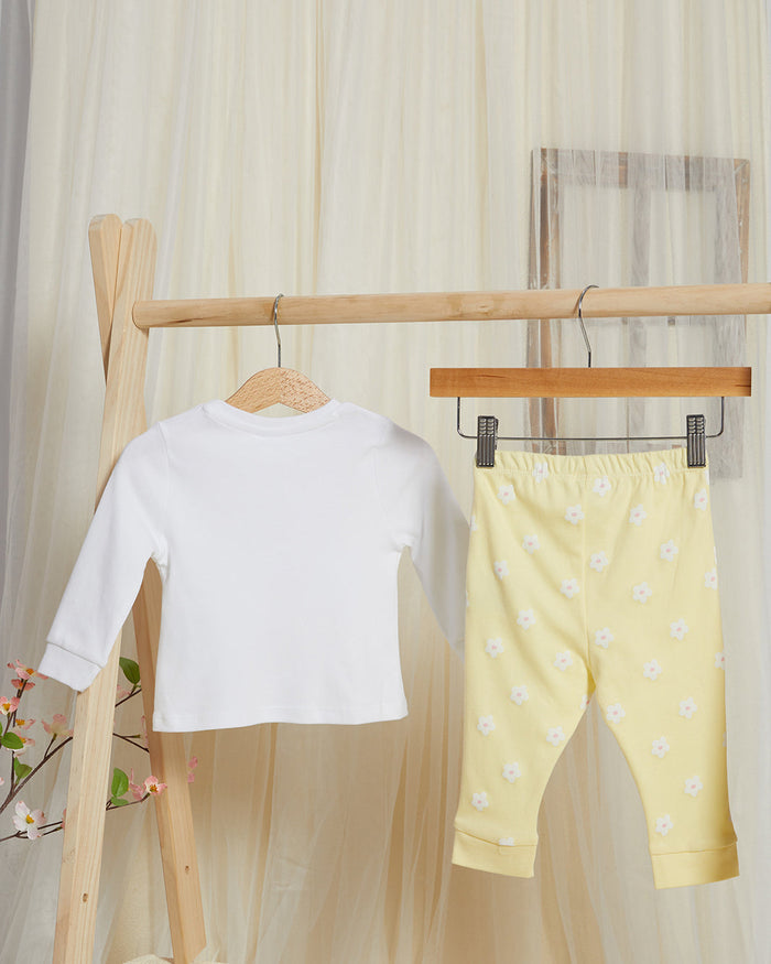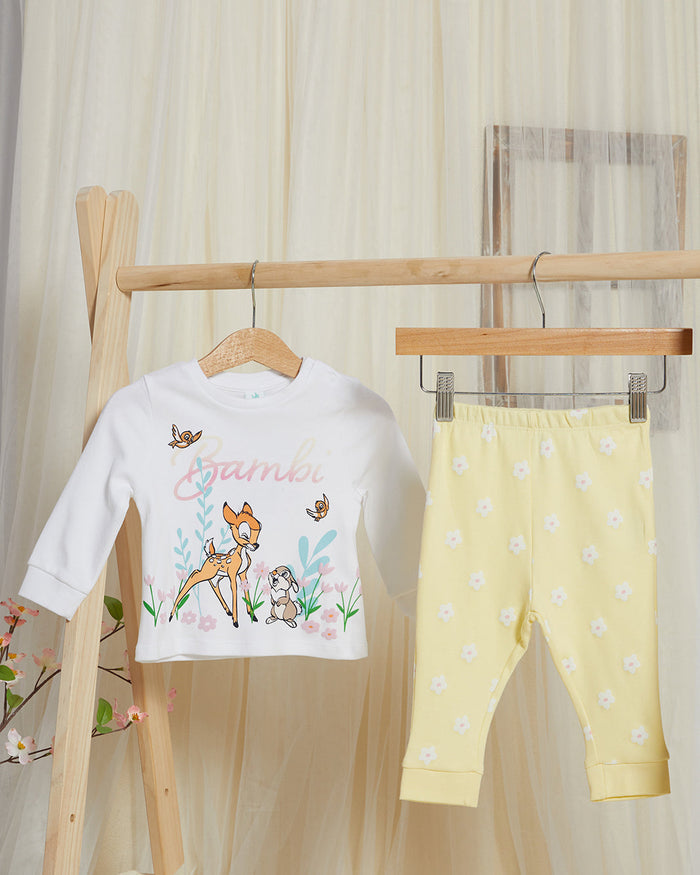 Infant Girls White And Yellow Bambi Pyjama Set (2 Piece)