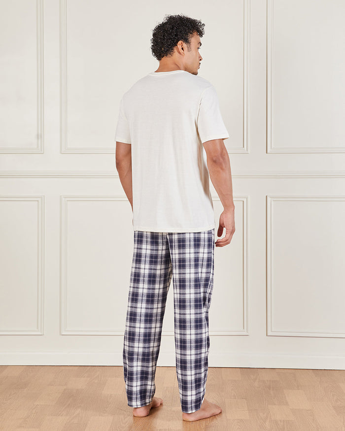 This comfortable pyjama set combines a minimalist white T-shirt with “Limit Break” print and soft checkered pants for ultimate relaxation. Ideal for lounging or sleeping in effortless style.
