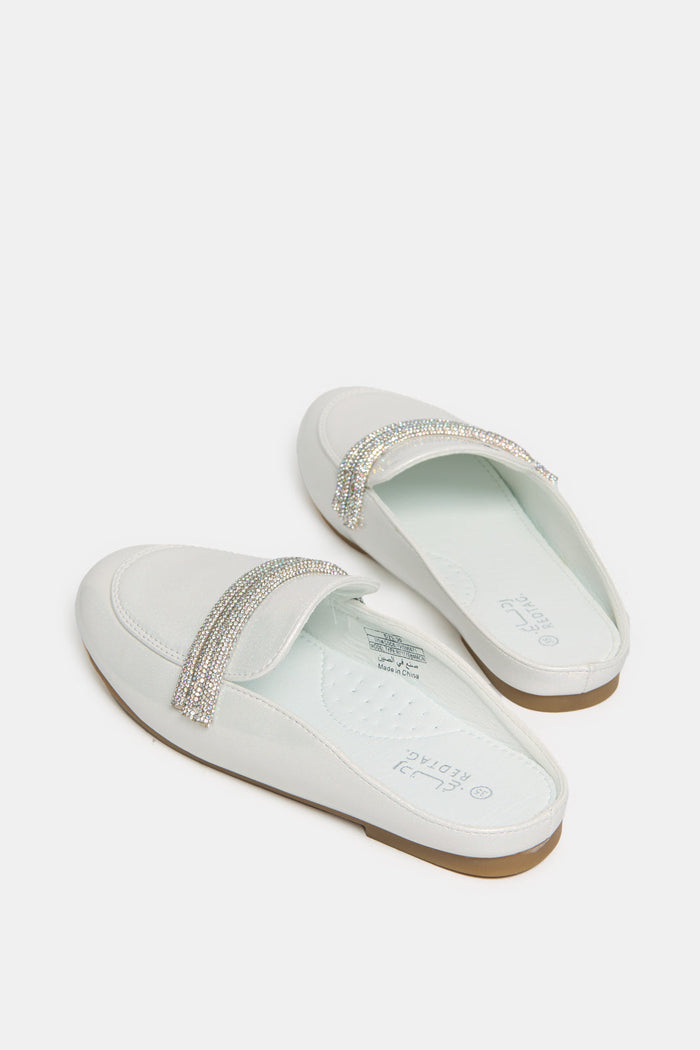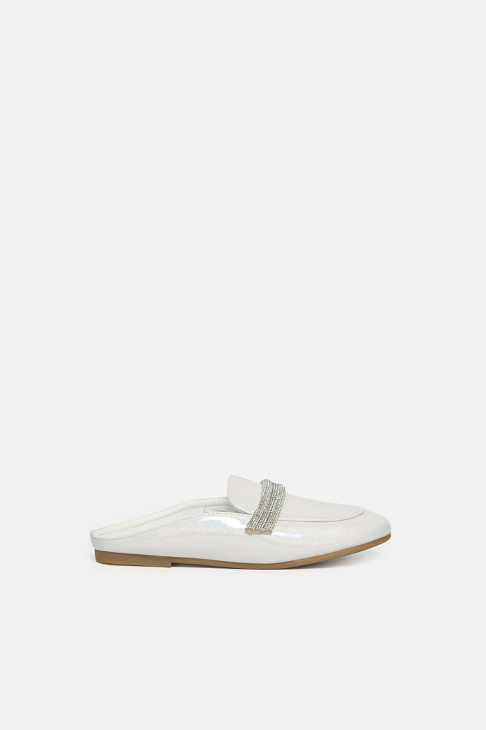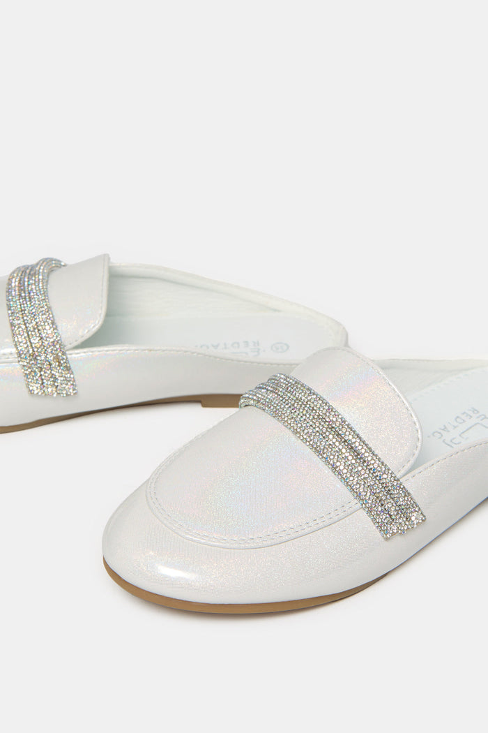 A white pair of mules with embellishments for senior girls. This pair is perfect to match with a dress on different occasions.