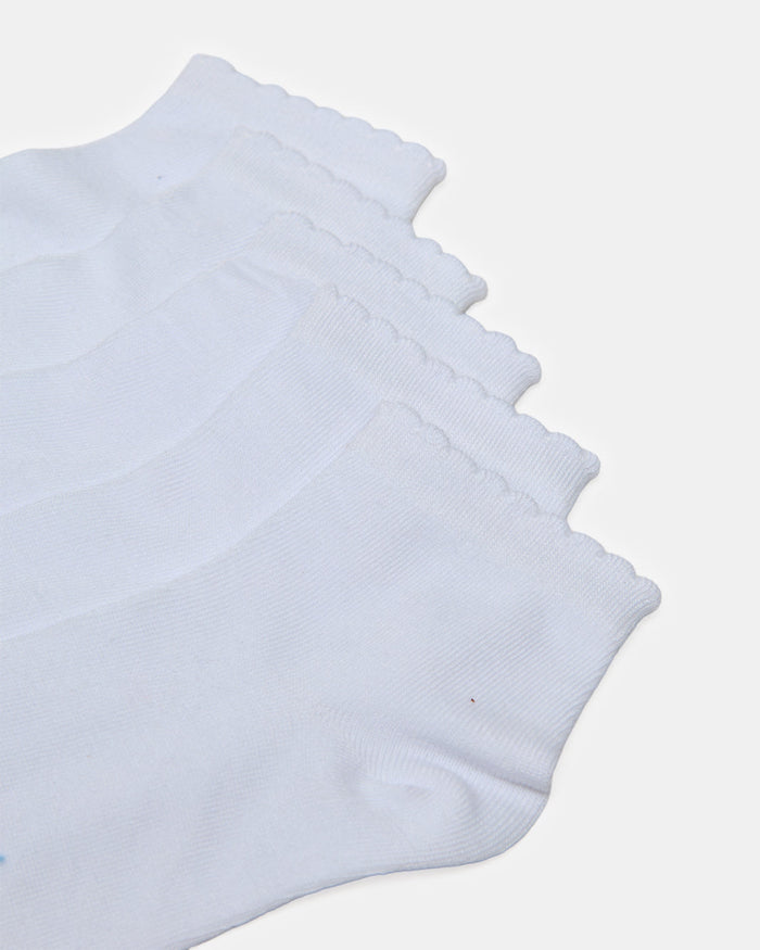 Senior Girls White High Ankle Socks Set (5 Pairs)