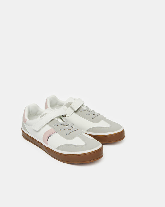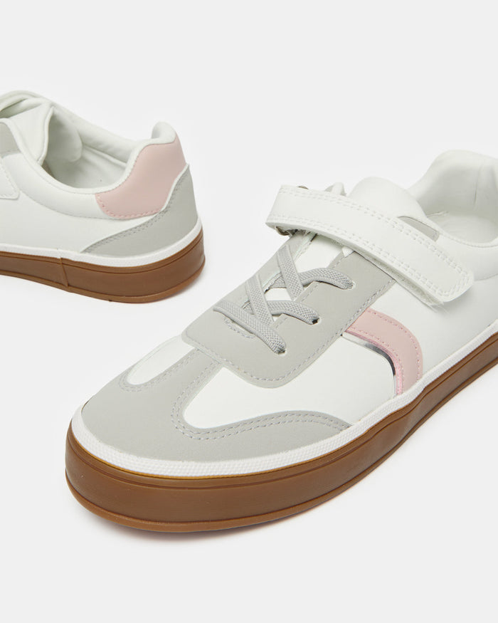 Senior Girls White Material Block Sneakers