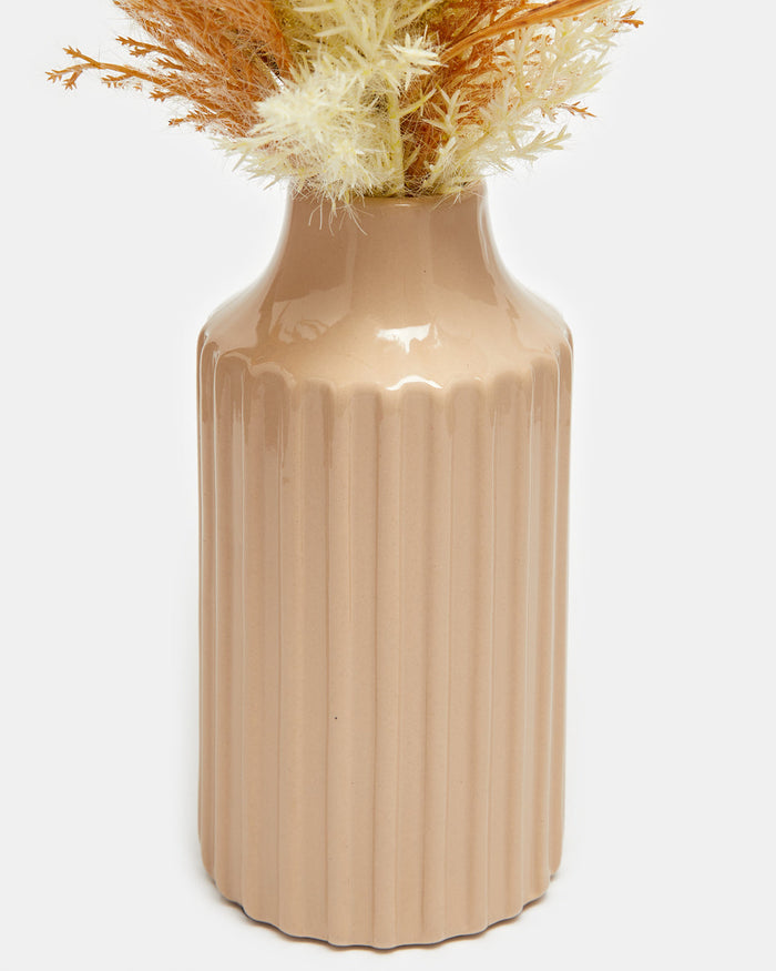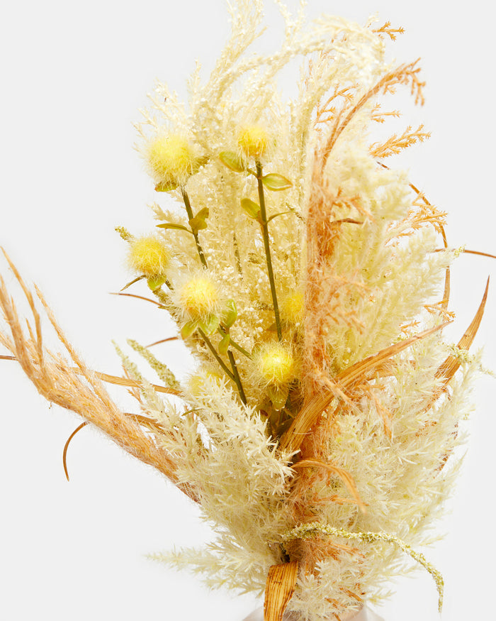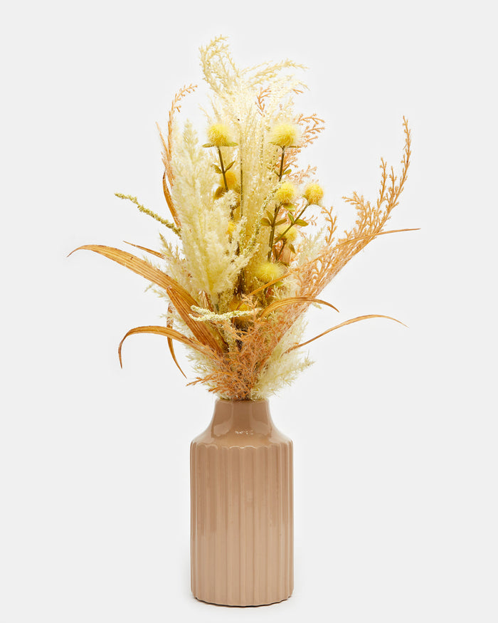 Yellow Pampas In Beige Ceramic Vase